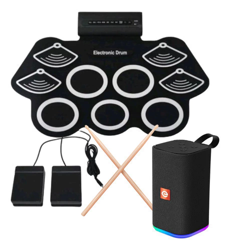 Bateira Eletrônica 6 Drums 5 Metal Silicone Portátil com Pedal e Baquetas - Grátis Caixa de Som Bluetooth Exbom