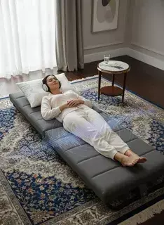A Cama Vibro Sensory Musical é um produto portátil e autônomo, para uso auto apoiado, gerando conforto e relaxamento individual. Combina o poder terapêutico da música com vibrações táteis sincronizadas, criando uma experiência única que leva seu corpo e mente a um estado de profundo relaxamento, sem efeitos colaterais, apenas ciência e bem-estar trabalhando a seu favor.
