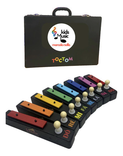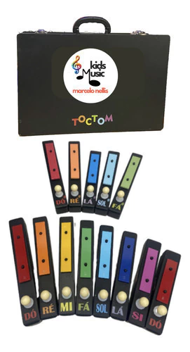 ESTE MODELO: Toc Tom Vibratom P-7110 - Metalofone em Barras CROMÁTICAS com 13 teclas Avulsas+ ESTOJO + Bônus Kit de PARTITURAS Musicais PDF adaptadas com notas coloridas da KIDS MUSIC, que será enviado em seu e-mail (necessário informar após compra).