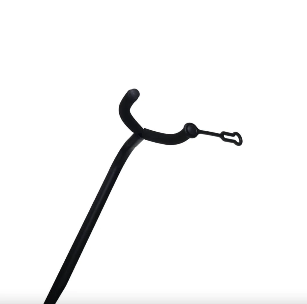 Suporte com trava (sistema abre e fecha fácil), com proteção em borracha para todas as partes de contato com o instrumento, evitando riscar ou danificar. Ajuste de altura perfeito para instrumentos com braço mais longo.