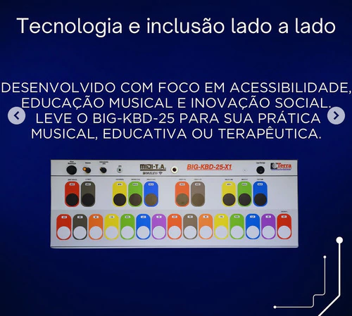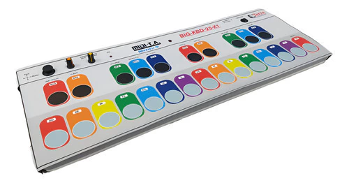 BIG-KB-25 é um controlador MIDI sem fio da Rede NET_MIDI_TA em formato de um teclado grande com 25 teclas grandes (2 oitavas completas), que podem ser usadas como acionador de notas musicais para vários instrumentos.